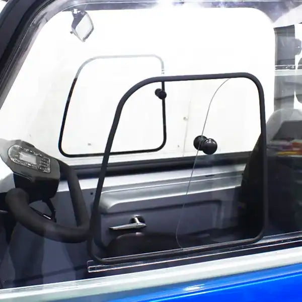 Dankzij de afneembare zijpanelen geniet u in de zomer van frisse lucht, terwijl u in de winter comfortabel beschut blijft. Ideaal voor boodschappen, familiebezoek of gewoon een ontspannen rit.