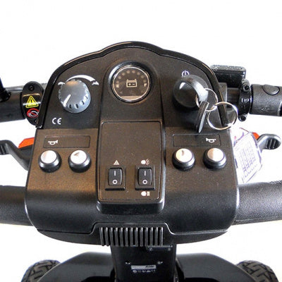 - Comfortabele rijervaring: De grote wielen zorgen voor uitstekende grip zonder in te leveren op stuurcomfort. Bovendien heeft de scootmobiel een lage instap en een stuurkolom die eenvoudig verstelbaar is voor een ontspannen zitpositie.